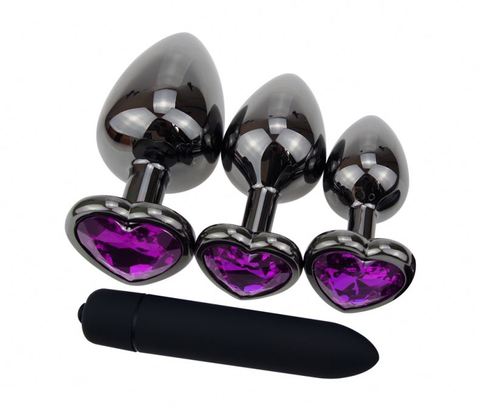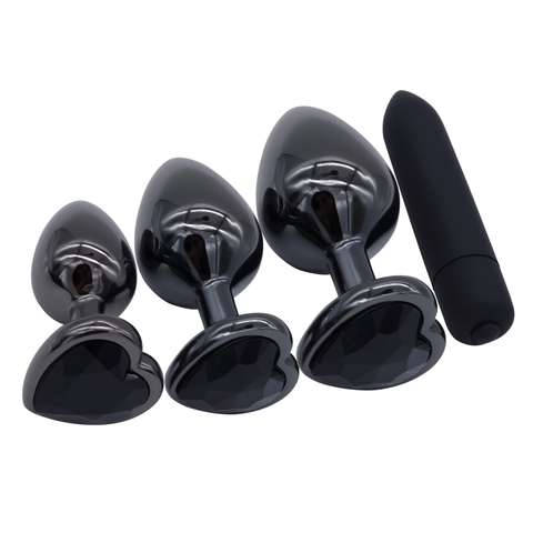3 pz/lotto Gunmetal a forma di cuore in acciaio inossidabile Butt Plug Dildo vibratore Plug anale massaggiatore per adulti perline giocattolo anale del sesso