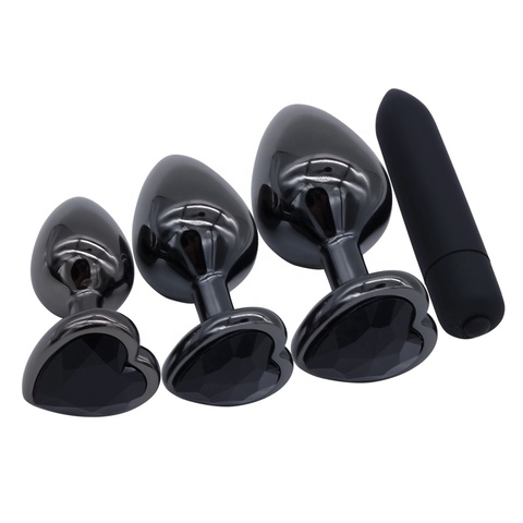 Inserire massaggiatore vaginale nero metallo innesto vibratore cuore Base anale Dildo prodotti per adulti gioco
