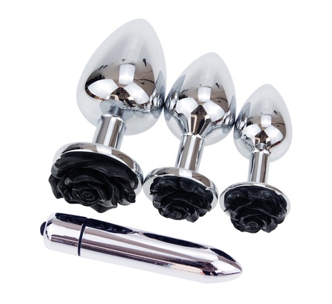 4 pz/set Rose Flower Penis Steel Butt Plug Dildo Bullet vibratore anale Butt Plug massaggiatore perline da cortile giocattoli anali erotici del sesso