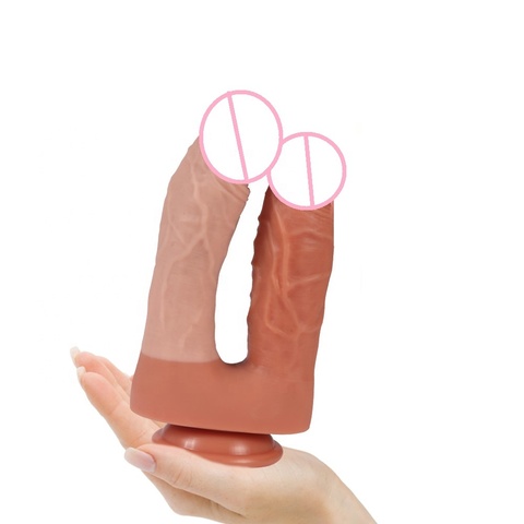 Dual Layer Silikon Doppelkopf Dildo Strong Sucker Simulations gerät Adult Sexspielzeug Weibliche Masturbation